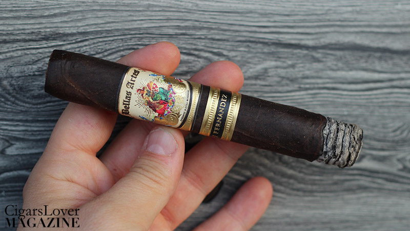 AJ Fernandez Bellas Artes Maduro Robusto: unlit, hints of cocoa and earth. The opening is very structured and brings notes of earth and vegetal notes to the palate.