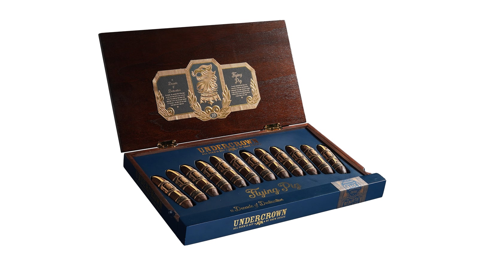 According to Jonathan Drew, “Undercrown is the cigar born from the hands and hearts of our factory floor. The Flying Pig vitola is a symbol of life’s rugged journey, and now added to our 10th-year anniversary, A Decade of Dedication.”