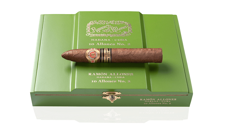 The new Ramon Allones, Allones No. 2, will be distributed in boxes of 10 cigars, painted in a colorful green (all the 2019 limited edition are packed in colored boxes).