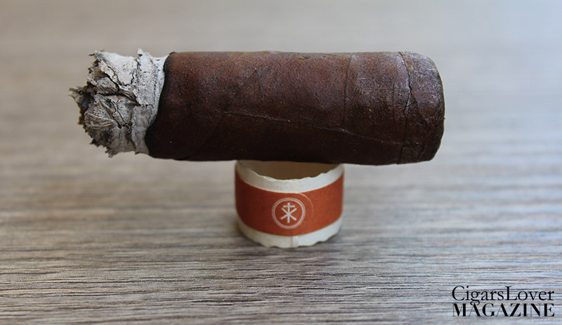 Looking at the wrapper, it present a Colorado Maduro tonality, which is rustic to the touch. Veining is not very pronounced. It is perfectly rolled, with the head closed flat, a trademark of the Neanderthal line.