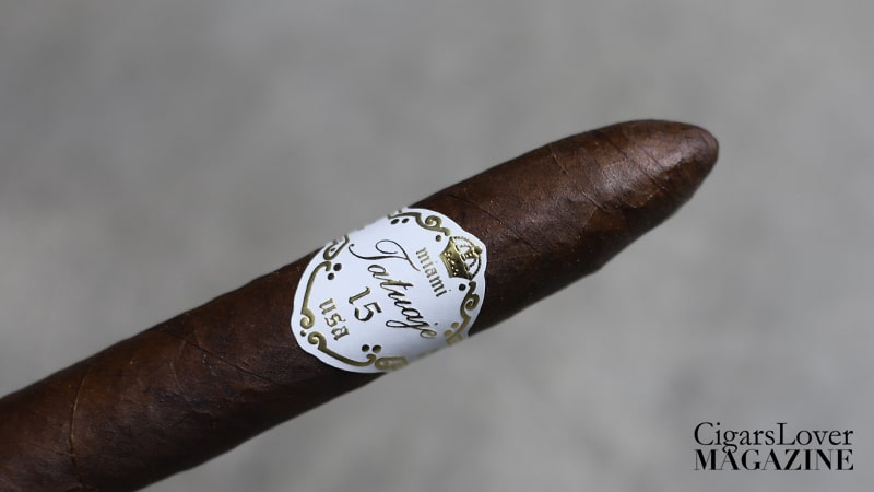 Tatuaje 15th Anniversary Habano Oscuro Belicoso Fino: cocoa on the cold draw. First few puffs are mainly vegetal.