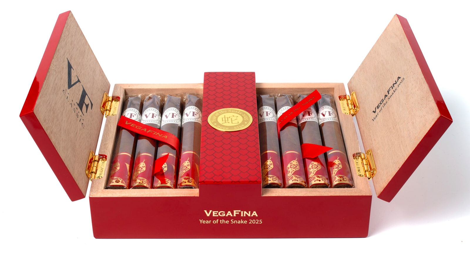 Next month, Tabacalera S.L.U. will launch the VegaFina Year of the Snake 2025, a 56 x 159 mm (6 1/4″) corona extra with a long pigtail designed to resemble a snake’s tongue.